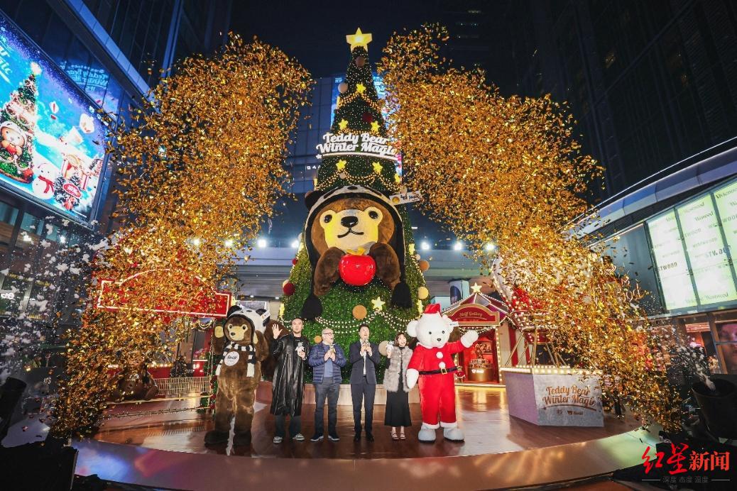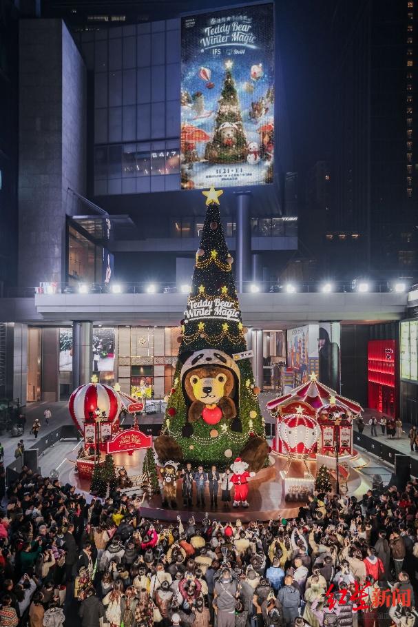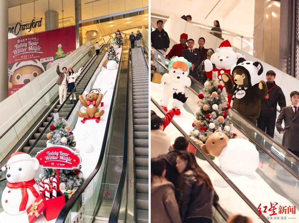 红星路同样热闹非凡,30米扶梯被装点为“雪地狂欢”主题雪道,国际名品走廊则上演一场流光溢彩的“星光舞会”,Steiff泰迪熊家族盛装亮相,吸引着来宾驻足合影。
