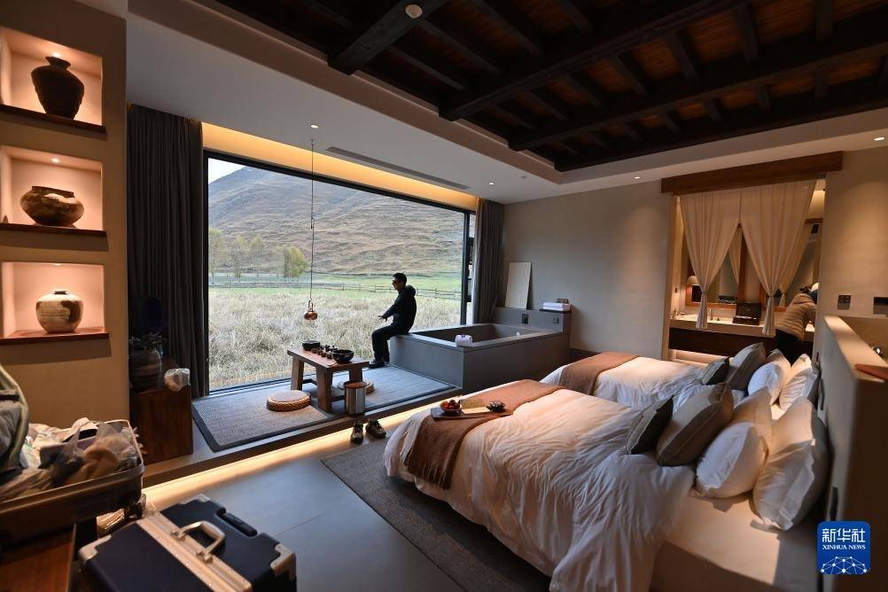 10月31日,在四川省甘孜州康定市新都桥镇,来自浙江的游客在民宿“赞巴·明境”的房间里休息。